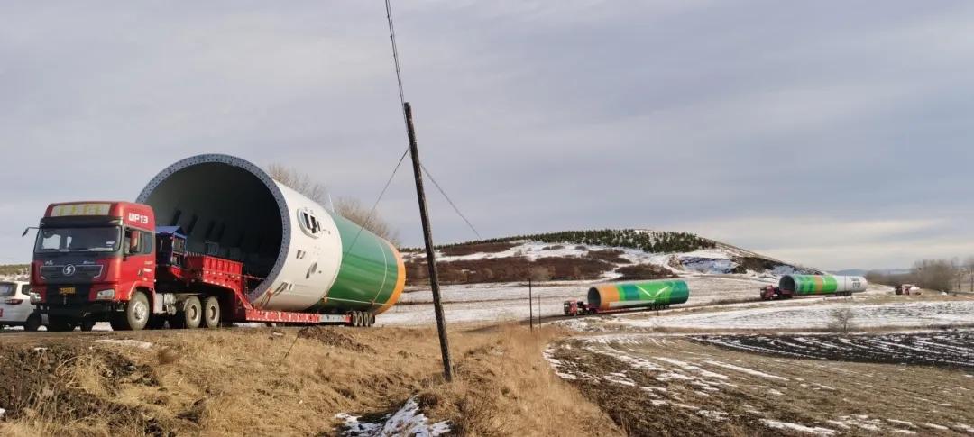 项目部自1月踏雪勘察,6月建成堆场、7月启动转运,全程与严寒和复杂路况较量。所运塔筒单段最大直径6.28米,重130吨,装车后高度达7米,远超常规标准。