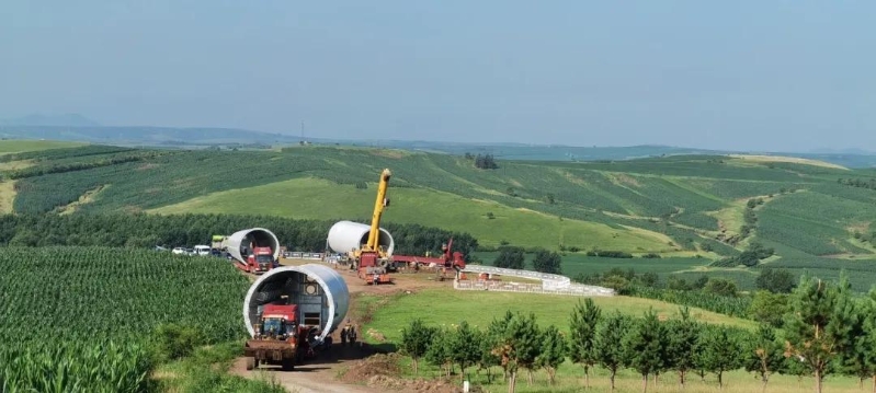 截至目前项目共需转运59套塔筒已完成45套。项目投运后年发电量可达26.5亿千瓦时,相当于节约标准煤109.3万吨,减排二氧化碳284万吨、二氧化硫407.7吨、氮氧化物1165.2吨、烟尘121.4吨,将显著提升区域清洁能源消纳能力,为"双碳"目标贡献硬核力量。
