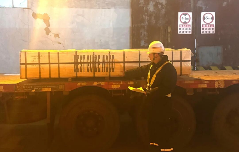 深夜值守不松懈,严把关口守初心。当晚,胶合板出口装卸作业正有序开展。当班理货员恪守“不漏一票、不错一件”的工作准则,严格遵循理货操作规程,逐票核对货物信息,仔细查验每一件胶合板的唛头、目的港、规格及船名标识。在细致入微的核查中,理货员凭借扎实的业务功底和强烈的风险防控意识,发现现场部分胶合板的唛头信息与船舶作业舱口单、运输票据等单证内容存在明显出入,判断货物存在错发的重大质量隐患。